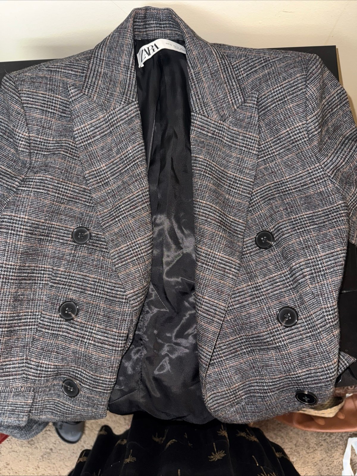 Zara Womans SZ XS Plaid Blazer Jacket Double Breasted Relaxed Fit Academia Prep
